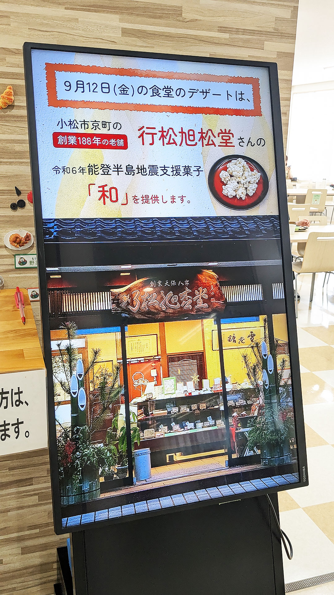 行松旭松堂さんの能登復興支援菓子「和」を社員食堂で提供しました