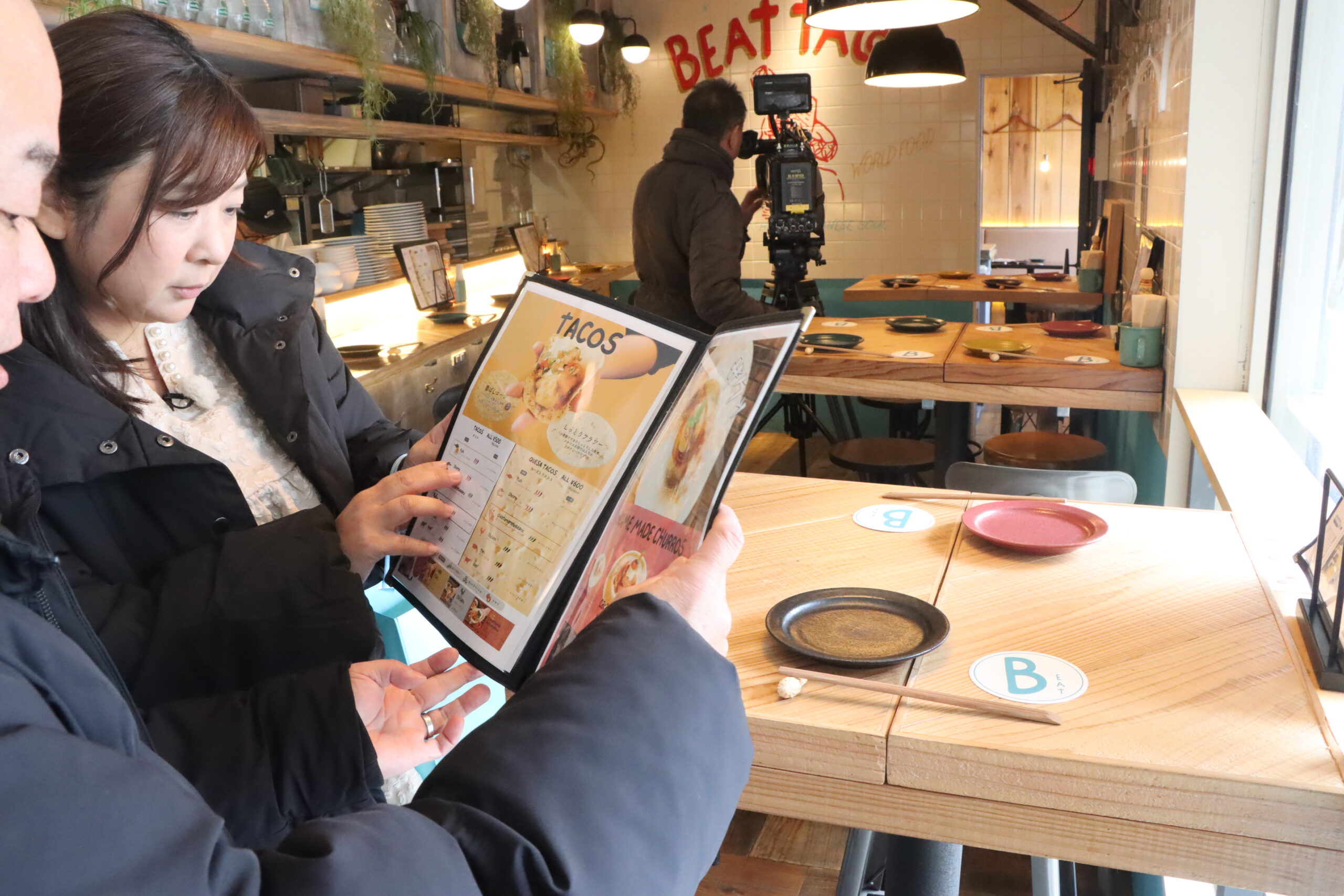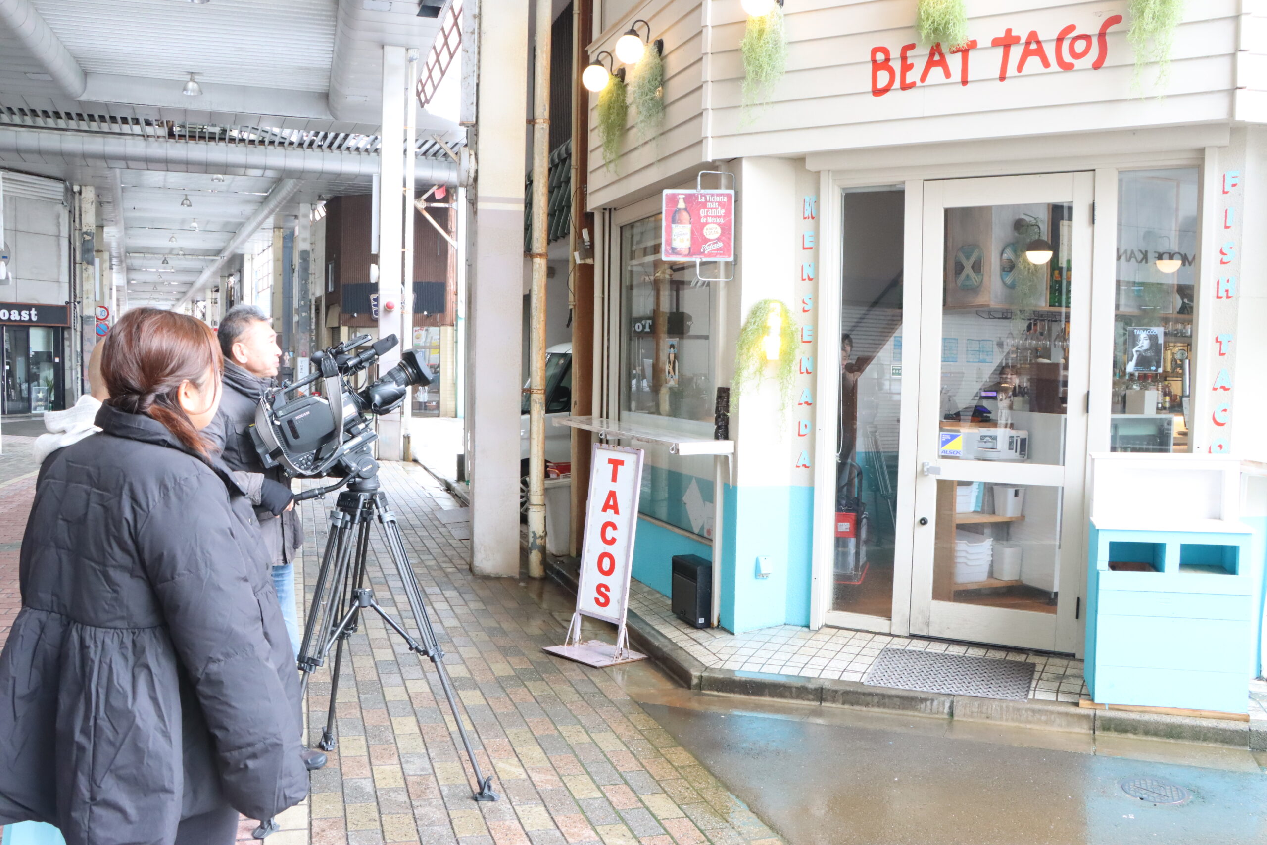 BEAT TACOS 小松本店で、テレビ金沢の「となりのテレ金ちゃん」の取材と撮影がありました。