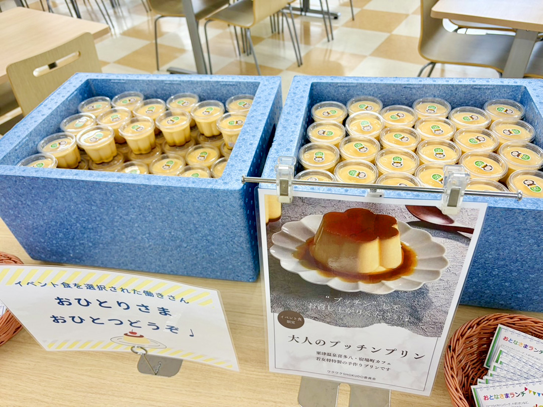 デザートのプリンは、粟津温泉喜多八内の「宿場町カフェ」さんにご用意していただきました。