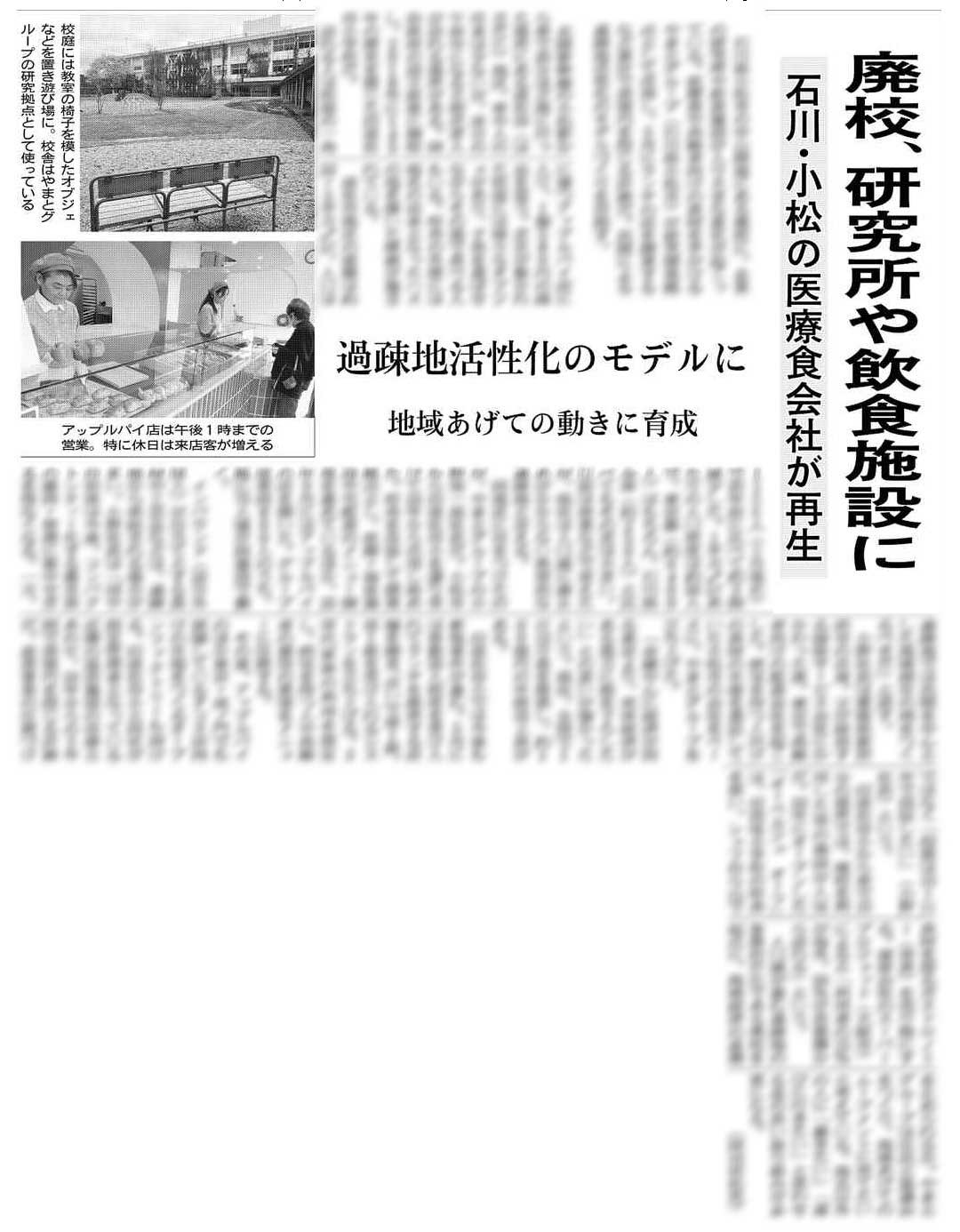 今回の掲載では、当社の医療食事業の取り組みや、廃校施設を活用した研究所・飲食施設としての再生プロジェクトが、地域経済の活性化や持続可能な社会づくりへの貢献事例として紹介されました。