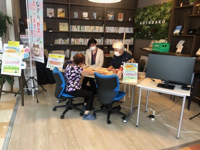 今回、手を30秒間かざすと、日頃の野菜摂取量が測定できる「ベジチェック」という機器を働きさんに